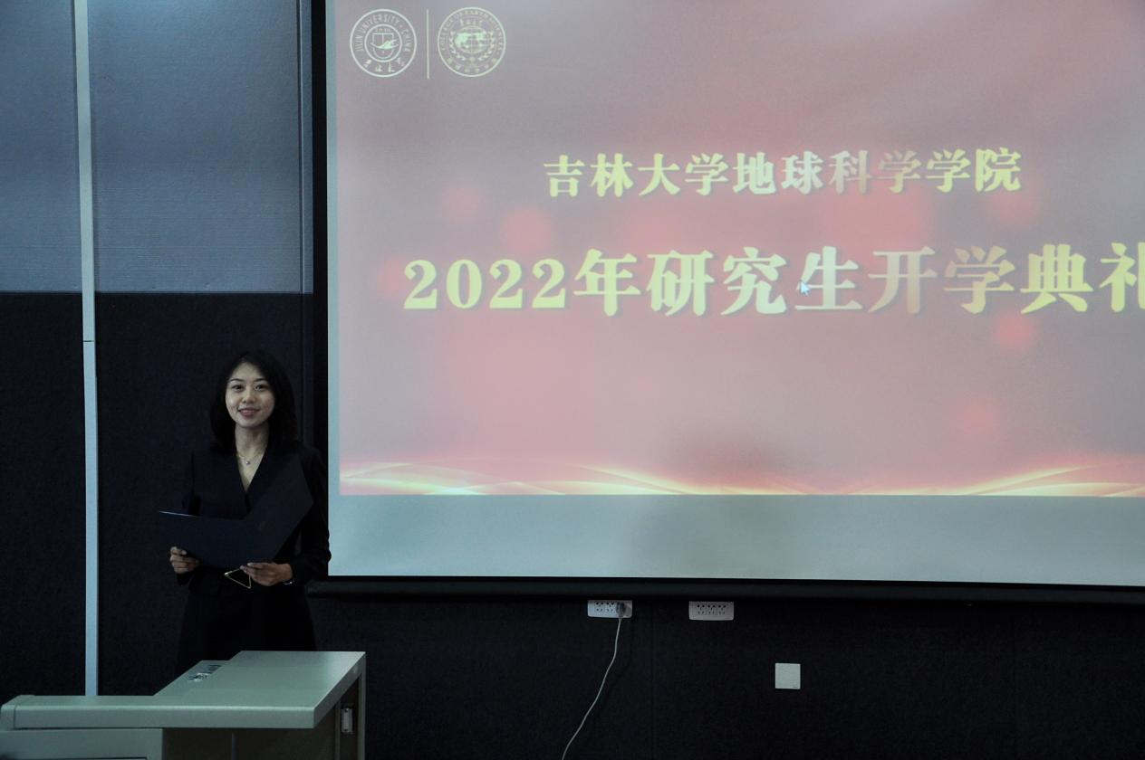 2022年研究生开学典礼在鸽子楼125阶梯教室隆重举行。院党委书记杨洲,院长单玄龙,学术委员会主任委员许文良,研究生培养指导委员会(专业学位)主任委员王璞珺,地质学学科学位评定分委员会主任委员薛林福,教学委员会主任委员、地质学系主任董永胜,副院长杨德彬、柳蓉、李伟民、曲大为,国土资源系主任王冬艳,博士生导师周建波,研究生学科建设与外事办公室主任李艳博出席典礼。开学典礼由学院党委副书记马旭主持。