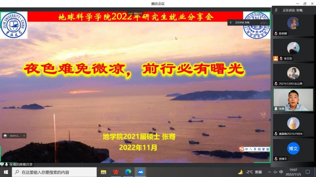 为充分发挥学院就业资源的优势,实现学院研究生就业工作“就业数量与质量”的双提升。115日,学院邀请2021届构造地质学专业硕士毕业生,绅士漫画 “十佳研究生”张骞,为学院研究生开展了一场专业内就业的云端经验分享会。本次会议由学院就业兼职辅导员张芯语主持。