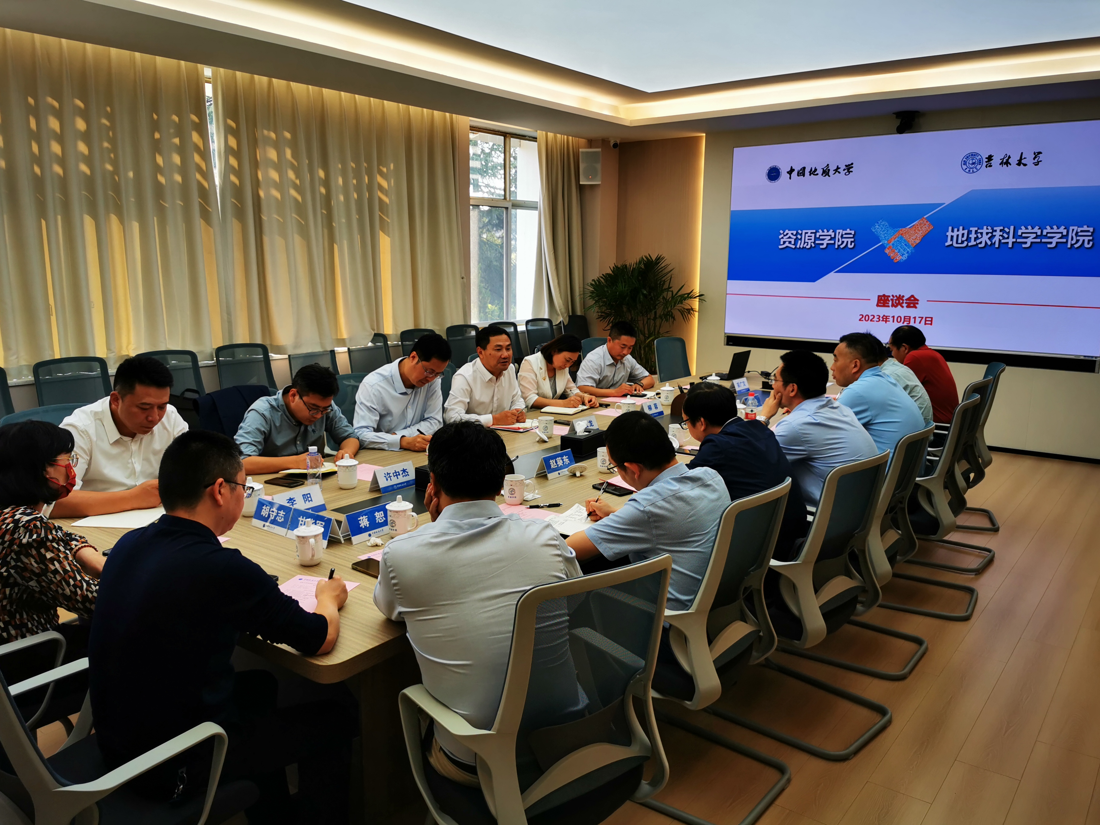进行座谈交流。座谈会由党委书记周刚主持。院长吴元保、单玄龙分别介绍了学院的基本概况,双方围绕人才培养、学科建设和师资队伍建设等方面工作进行了交流。贵院朱宗敏、罗根明副院长、赵得爱副书记、构造系徐亚军主任、办公室刘建华主任参加了座谈交流活动。