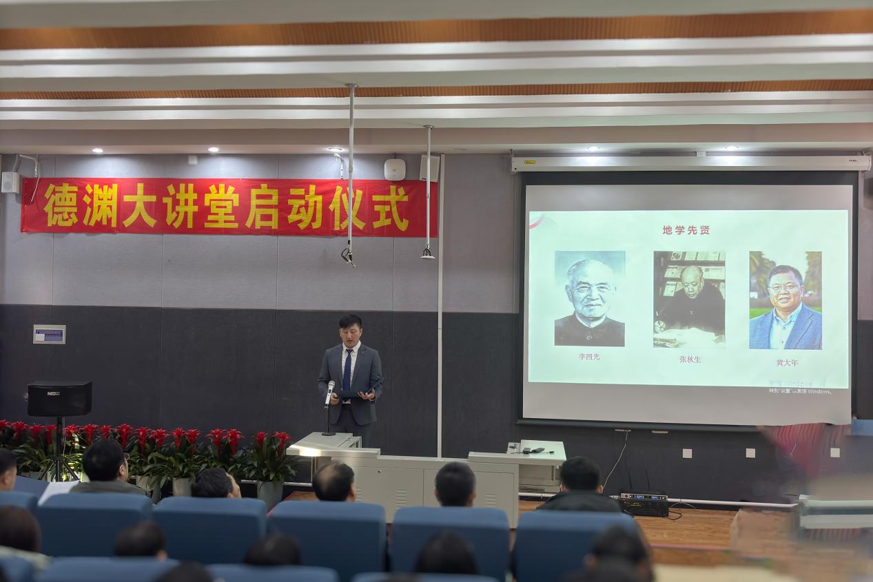 活动上,党委书记杨洲、院长单玄龙共同为“德渊大讲堂”揭牌。未来,学院将邀请知名校友、优秀人士积极开展人文素质教育讲座,通过成长经历分享,着力培养“品德高尚,学识渊博”的新一代地学人才,引导全院师生树立远大理想,推动新时代地学事业不断向前发展。