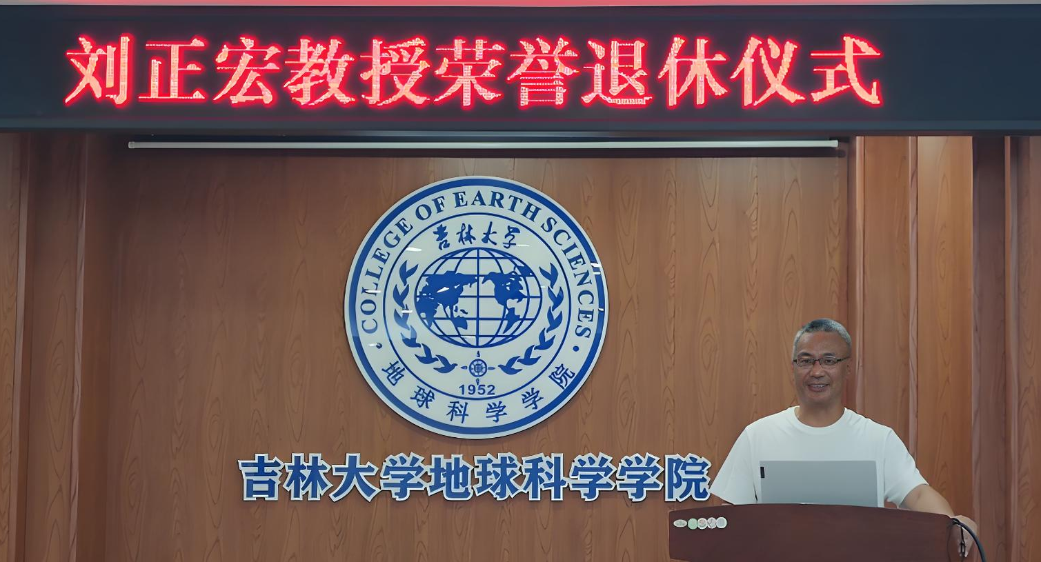 仪式上,衣长涛书记发表了深情讲话。他指出,构造地质学教研室的老师们和刘正宏教授的学生们自发为刘老师举办这场荣休仪式,充分体现了大家发自内心地认同刘老师的高尚品格,肯定其突出贡献,感念其深厚师恩。有感于此,衣长涛书记提出了三点期望:一是传承。希望以刘正宏教授为代表的退休教师们,在身体和时间允许的情况下,继续关注并参与学院建设,指导年轻教师成长。他强调,传承是学校的重要职责,不仅要传承知识,更要传承前辈们做人做事的态度与风骨。这种精神传承将对年轻人产生深远影响,激励他们在各自岗位上不断取得新成绩、作出新贡献;二是敬业。希望构造地质学教研室的年轻教师以刘老师的荣休仪式为契机,在回顾自身求学与科研道路的同时,继续坚守初心、爱岗敬业、心系集体。要学习鸽子楼前辈们的精神,勇于开拓,积极进取;三是协作。学校和学院是大团队,科研组和教学组是小团队。团队协作是取得成果的前提,每位成员都应在团队中找准自己的定位,承担相应职责。希望老师们无论身处何种团队,都能积极扮演好自身角色,贡献力量。