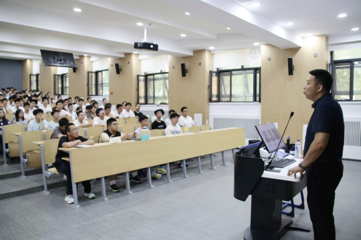 前卫南区敬信楼F区第六阶梯教室成功举办2025级本科新生首场思政公开课。本次公开课由学院党委副书记兼副院长李阳主讲,学生工作办公室主任兼2025级辅导员韩旭以及全体2025级本科新生参加。