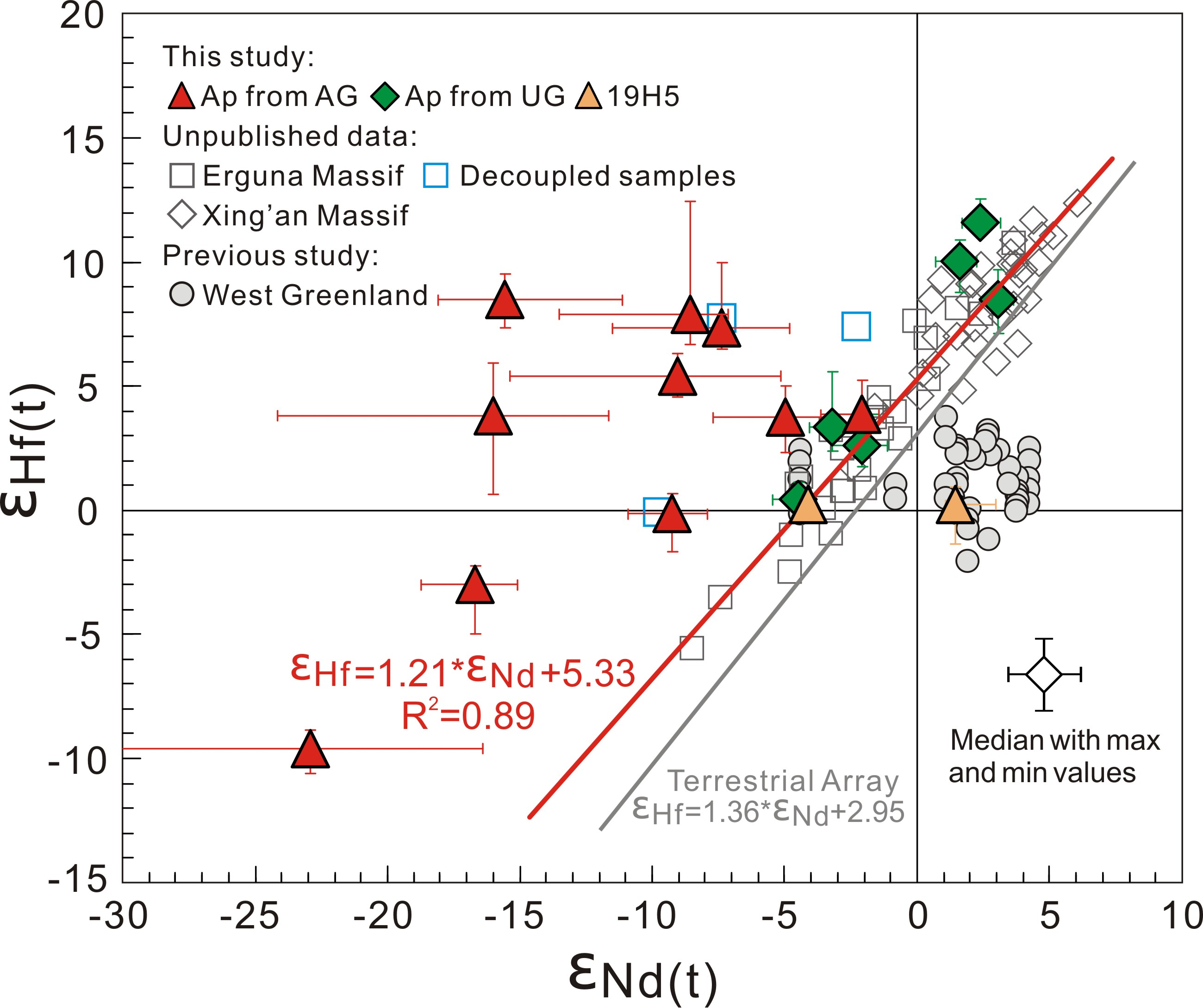 图4 磷灰石εNd(t)与锆石εHf(t)的相关性