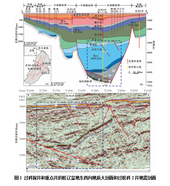 松辽盆地国际大陆科学钻探工程及相关研究历时18年(2005-2023年), 实施“三井四孔”技术方案,完成总钻探进尺14,455.06 m,总取心进尺8,528.19 m,收获岩心总长度8,261.67 m,总取心率 96.87%。这使得松辽盆地成为全球首例钻穿整个沉积盖层和盆地基底顶部构造层并获取连续完整岩心的含油气盆地。然而,松科 2 井最后100 m 到底钻遇到了什么?相关的岩石类型、地层序列和测井资料,迄今未见客观翔实的科学报道。作为松辽盆地国际大陆科学钻探地质研究团队,基于松辽盆地国际大陆科学钻探松科2井的连续取心资料,对上述问题进行解答。