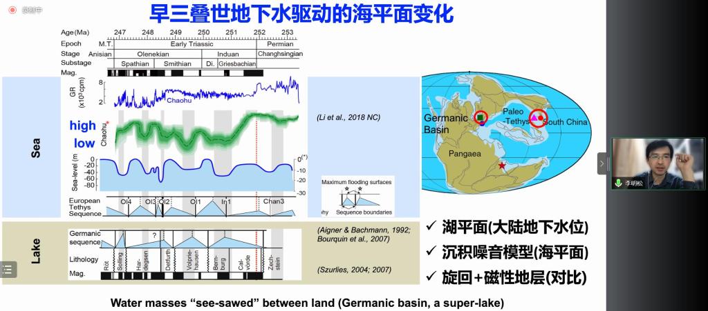 在互动环节中,李老师进一步对天文年代学方法进行了详细的解释,并与参会老师及学生针对二叠纪末大灭绝持续时间及进程以及海平面变化机制进行了深入的探讨。