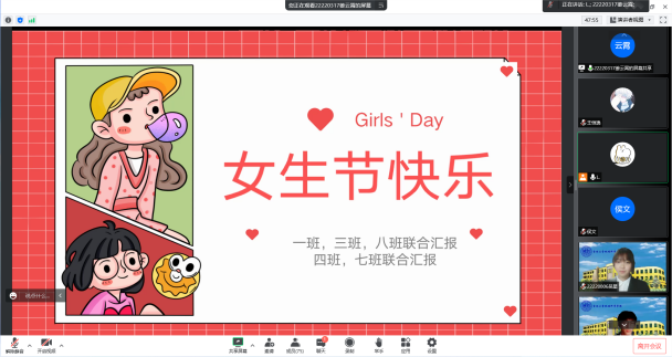 女生节晚会顺利开展,受疫情影响,本次活动转为线上开展。虽然隔着屏幕,同学们洋溢的热情依然能将冬日点亮。