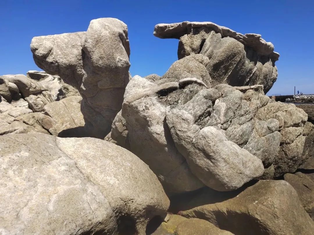 第三日,我们又回到了海边,这次是钓鱼台路线,站在钓鱼台三礁揽胜之地,近看细粒正长岩、石英闪长岩、花岗伟晶岩与似斑状二长花岗岩互相穿切,判定岩层新老先后;远观海蚀墩、海蚀崖、海蚀残丘与波切台地交相辉映,展现海蚀地貌特征。站在礁石之上,我们绘制了岩层穿切关系图。早早的完成了实习任务后,我们说笑着向着妈祖庙前进,可惜由于部分因素影响未能进入。最后全班同学与老师背对海洋,拍摄了纪念照,站在岸上公路旁,俯瞰海洋,不禁感慨实习之旅实在充满乐趣,也使得同学们更加期待接下来的几条调查路线了。
