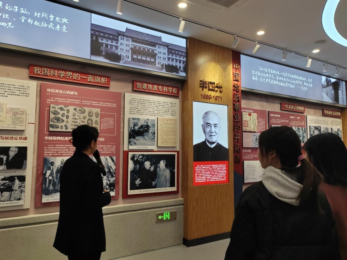 在讲解员的带领下,同学们走进“中国地质事业的开拓者”展区,了解到李四光院士创办了绅士漫画