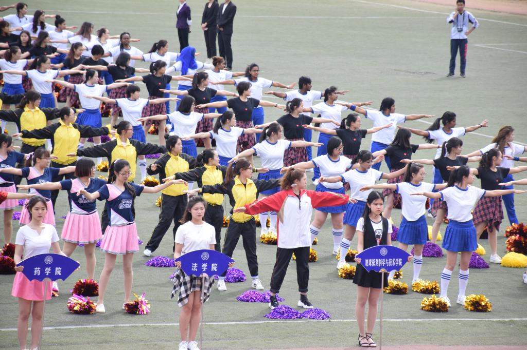 2018525日,我校第57届运动会正式开幕,从八点半起,伴随着比赛的进行,变成了各学院庞大的广播体操啦啦操表演队伍,地科的队伍与大部队一起, 为场上的运动健儿们加油助威。