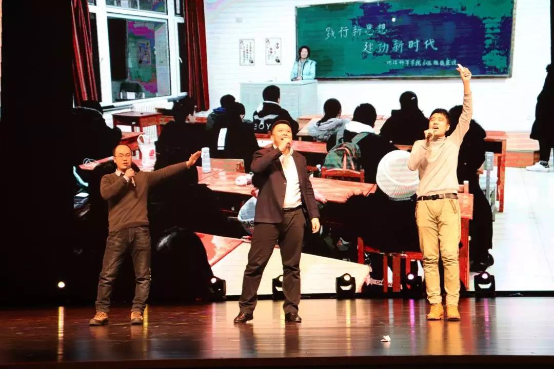 终于到了晚会压轴的部分,所有的领导、老师和参加演出的成员集体演唱《勘探队员之歌》。作为一名吉大地质人,我们百折不挠,立志要为祖国寻找最富饶的宝藏。这份事业,我们将会用一生的时光去坚守。随着歌声的结束,我们的晚会也终于到达了尾声。