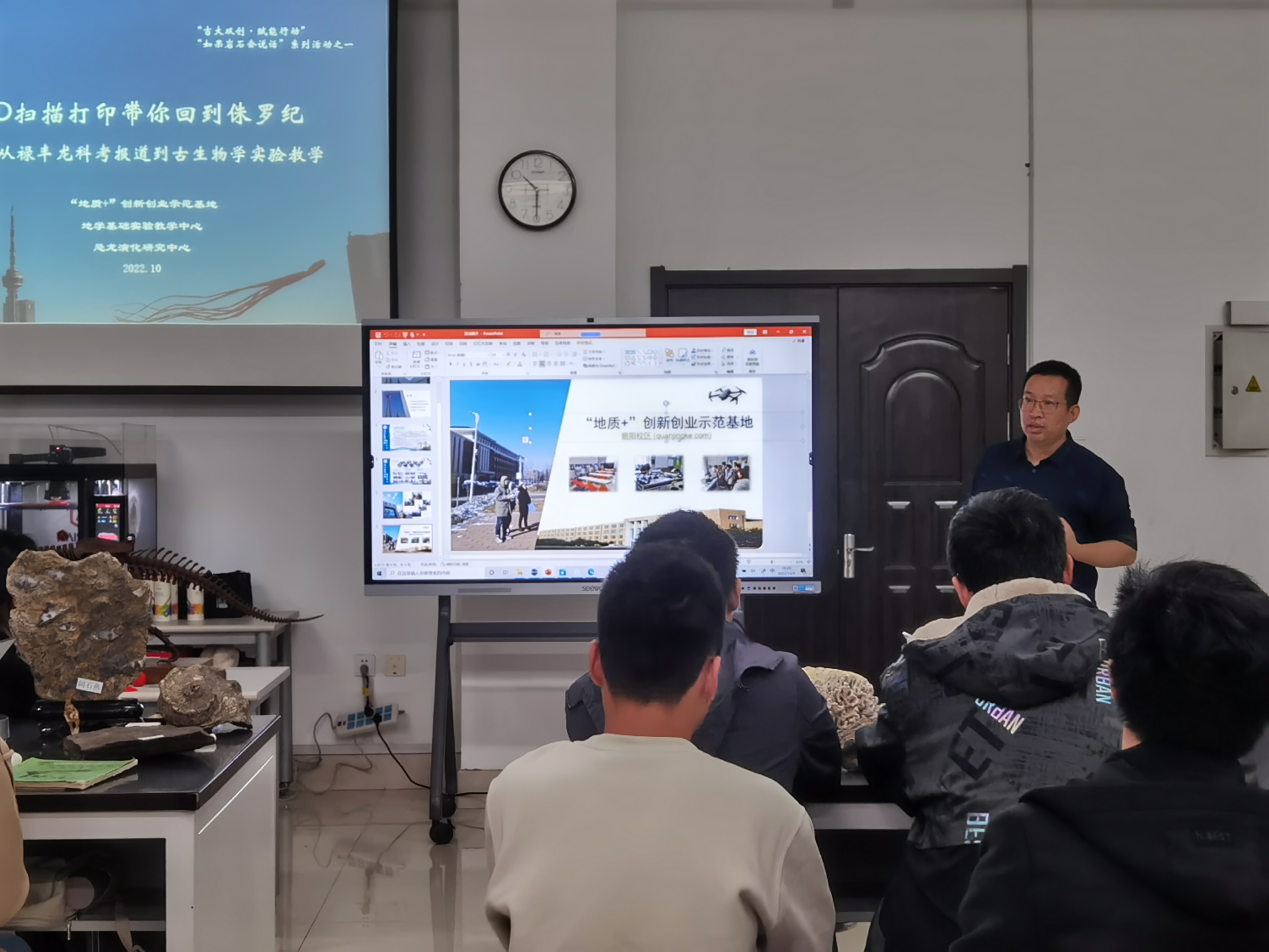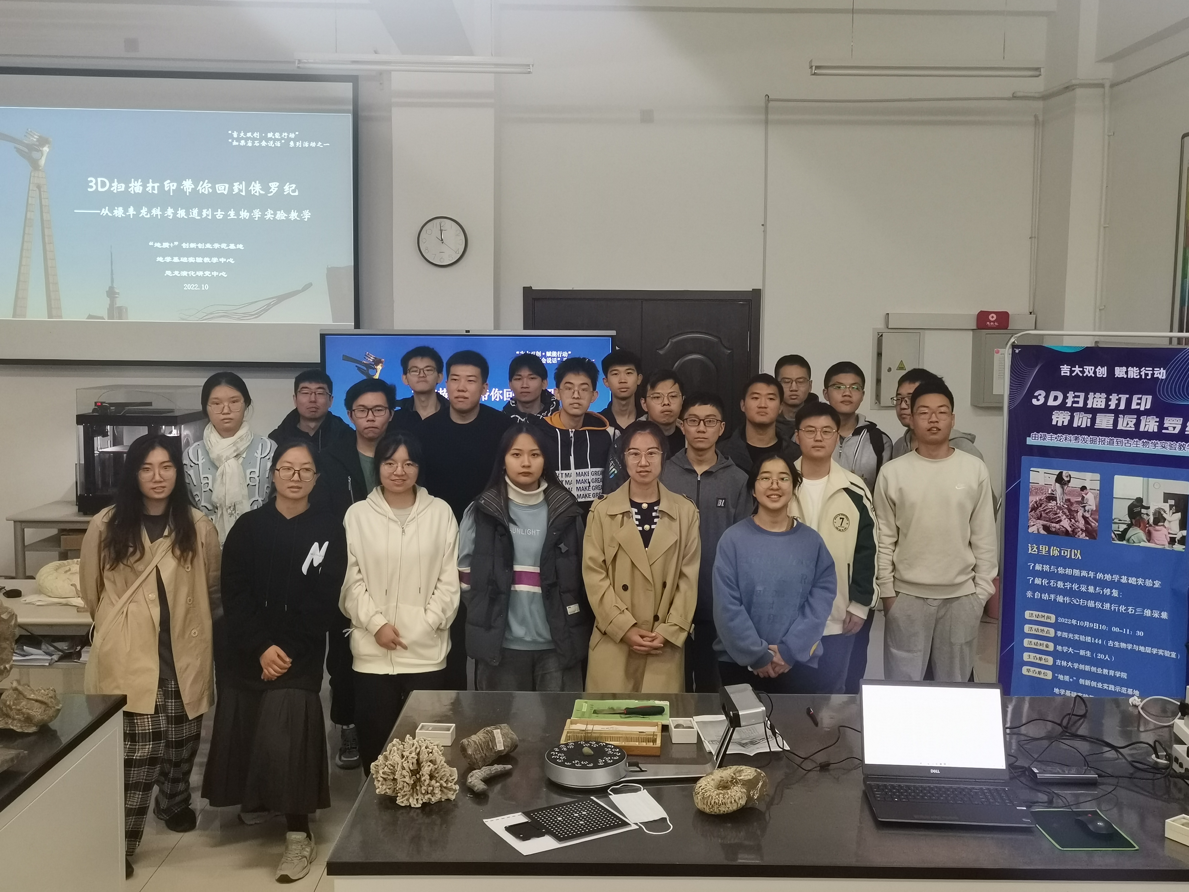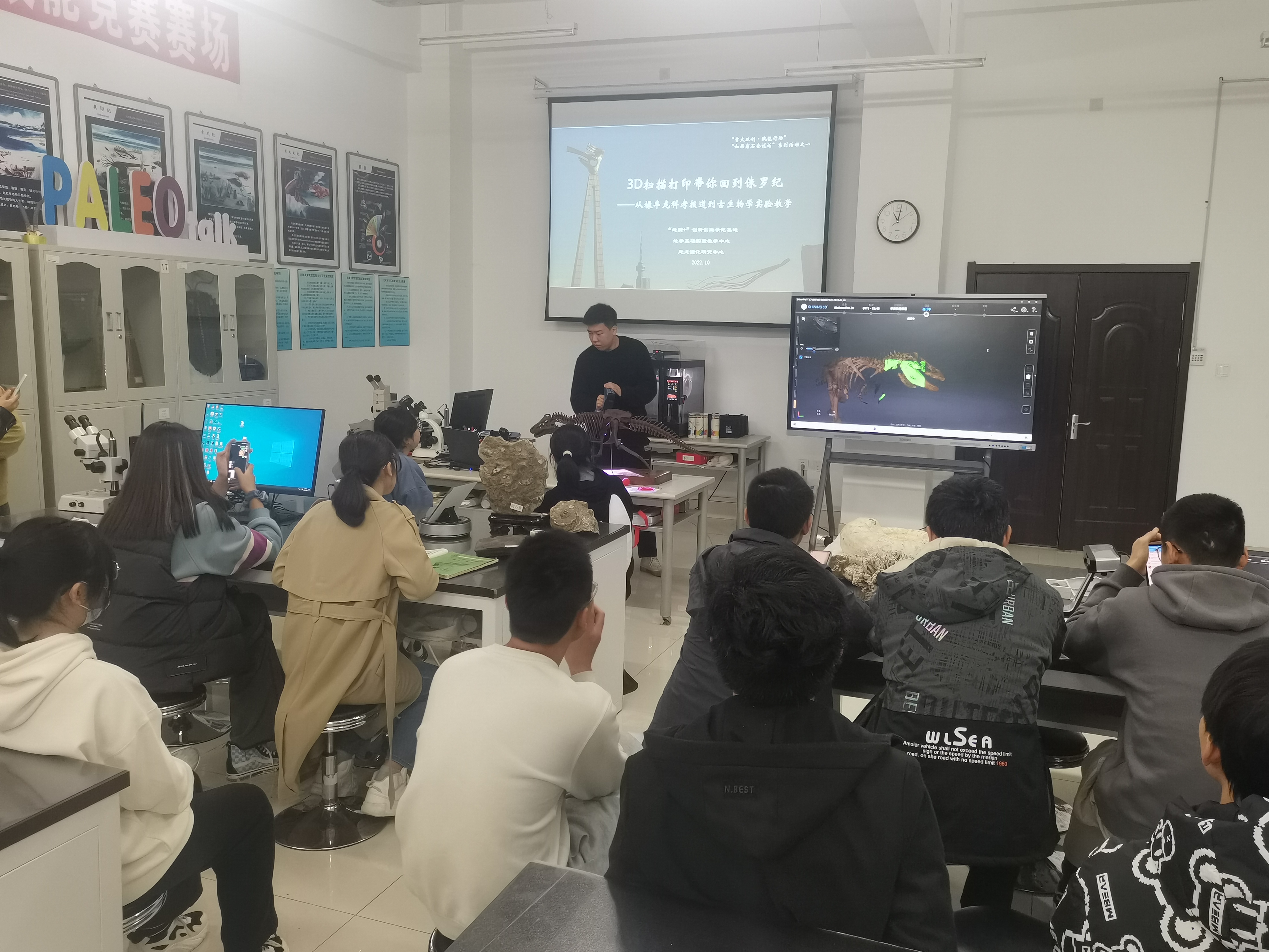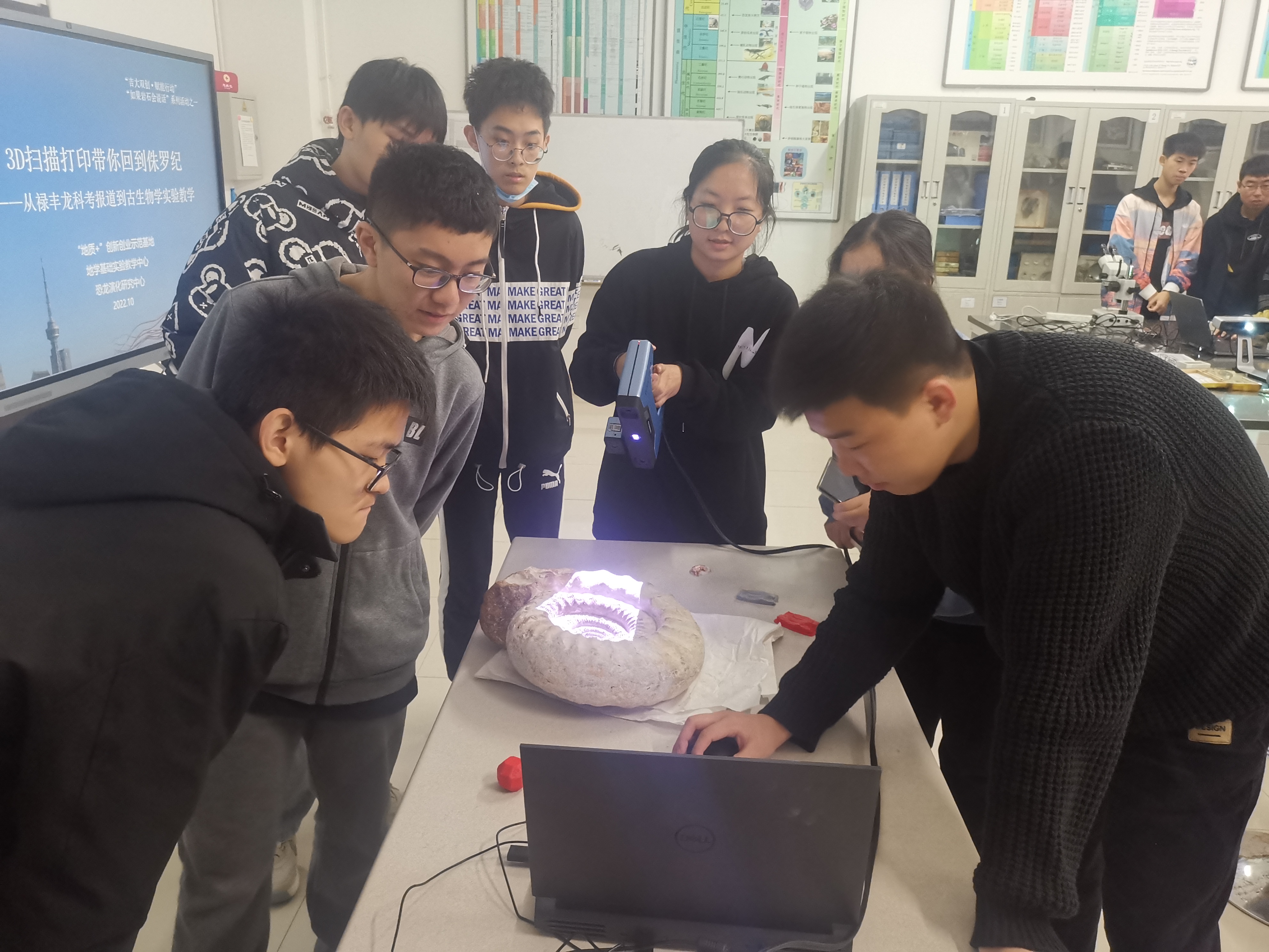2022年10月9日,“地质+”创新创业实践示范基地在李四光实验楼144古生物与地层学实验室内,组织开展了“3D扫描打印带你重返侏罗纪”实践活动,活动由绅士漫画