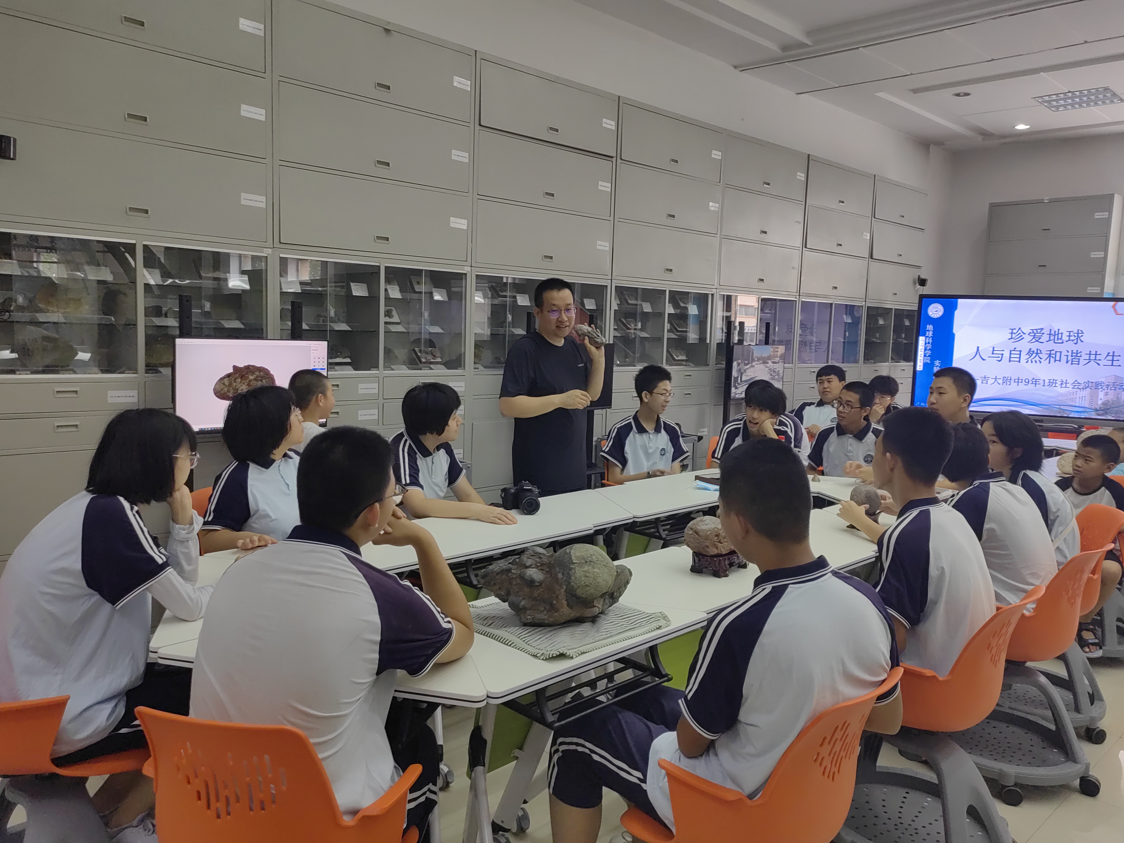 活动过程中,老师们耐心讲解,同学们积极提问,踊跃参与,热情高涨,同学们认识到地球是人类赖以生存的唯一家园,人类生活在地球上,衣食住行、生老病死、吃喝玩乐、社会发展都离不开矿物和岩石,由于矿物岩石资源的不可再生性,未来人类如何对它们进行更合理、更科学地开发利用,是他们需要面对的重要挑战。生物多样性及其演化使同学们意识到人与自然是生命共同体,只有处理好人与自然的关系,维护生态系统平衡,才能守护人类健康。最后,同学们热切期待以后篆刻、矿物颜料制作、化石清修及3D打印等开放活动的组织与开展。