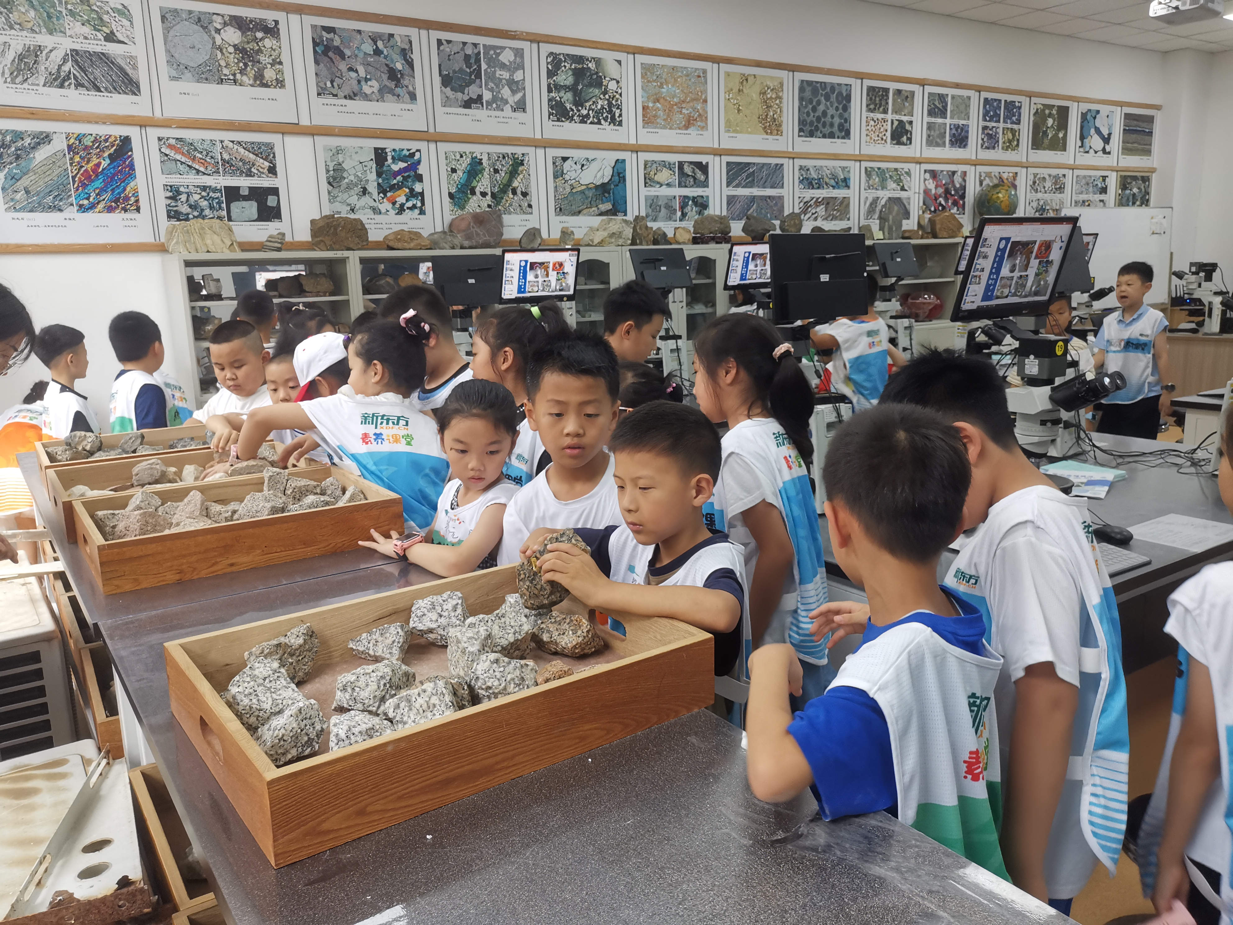 培训学院策划的面向中小学生的“新东方素养课堂”暑期科技实践教育系列活动。本次活动利用周末时间,为期5天,接待小学生1000余人。本次活动利用岩石学实验室、古生物与地层学实验室,开展走进地学实验室——地质学是什么;石英与生活——地球的物质组成;真真假假的化石——地球的演化三部分内容,通过知识讲解、实物演示、标本观察等多样化的学习体验,拓宽中小学生的知识视野,激发他们探索地球奥秘的学习兴趣。