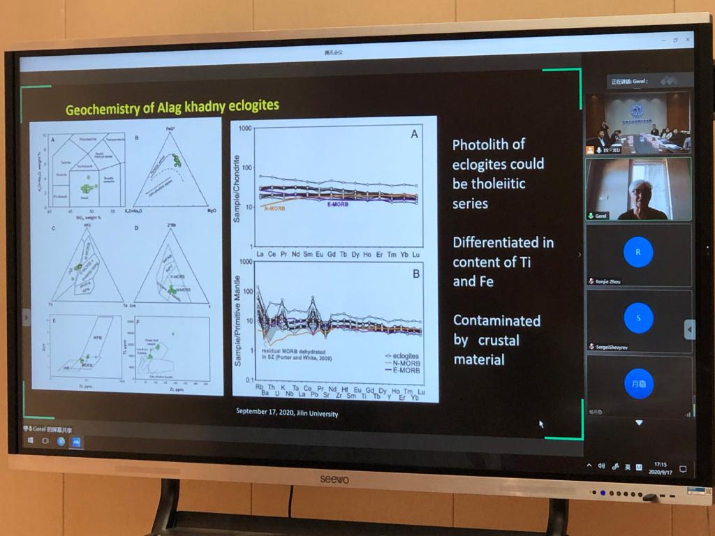 李文博讲师、蒙古科技大学地学研究中心奥其尔﹒盖瑞尔教授、曼彻斯特大学凯文﹒泰勒教授和马琳研究员分别以“东亚地区新生代沉积物重力均衡效应及其应用”,“东北黑土区城郊耕地多元质量退化评价及其保护分区研究”,“蒙古古俯冲带的岩浆作用和地球动力学”,和“地下储层的多尺度三维和四维成像-经验教训和未来方向”为主题进行报告与交流。双方就研究问题、研究方法、以及未来发展方向等前沿问题进行了探讨。